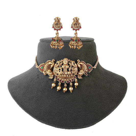 Exquisite Traditional Gold-Plated Temple Jewelry Set With Earrings